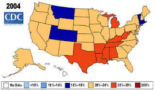 Obesity is increasing at epidemic rates around the world (International Agency for Research on Cancer 2002). Within the US, the epidemic is clearly shown spreading across the country (see map).